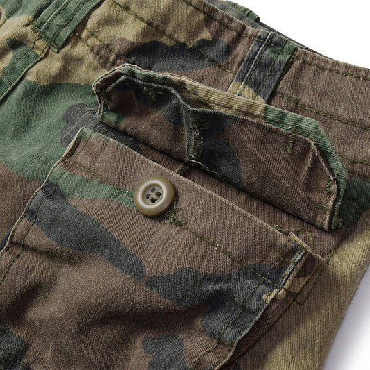 The perfect combination of utility & comfort. The field shorts are up-cycled from US DCU tri-color surplus military items from 1991-2012. No two pairs are alike.